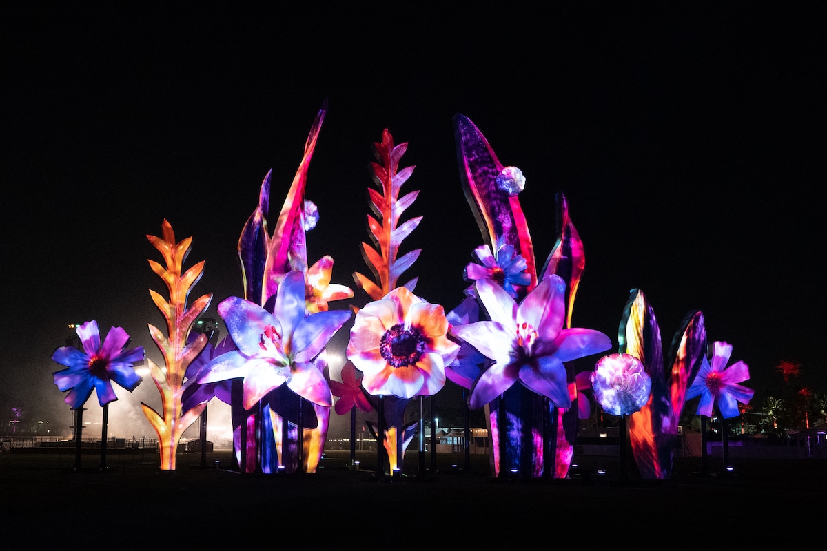 Los Angeles-based artist Maggie West brings spring to the desert with her installation Eden. Featuring photographs of a variety of plants in two color schemes (pinks and blues), West added these floral images to 20 steel structures, each covered with wood and vinyl. The garden includes structures that measure from 6 to 46 feet tall, making it one of the world's largest 3D photography installations.